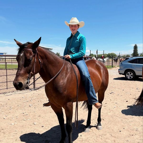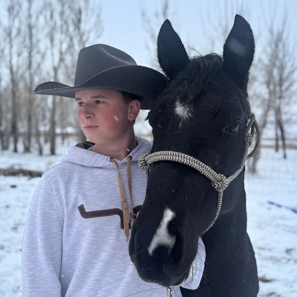 My name is Connor Barnes. In my spare time, I enjoy hunting, fishing, and learning everything I can about working with horses. Over the past few years, I’ve spent a lot of time alongside my dad learning how to start colts. I’m either brave enough or maybe a little crazy—the jury is still out—but I’ll climb on just about anything. I’m excited to start this pony from the ground up and give it a solid foundation to become a good riding pony for someone in the future. I’m looking forward to the lessons the next few months will bring. I wanted to compete because it seemed like fun!